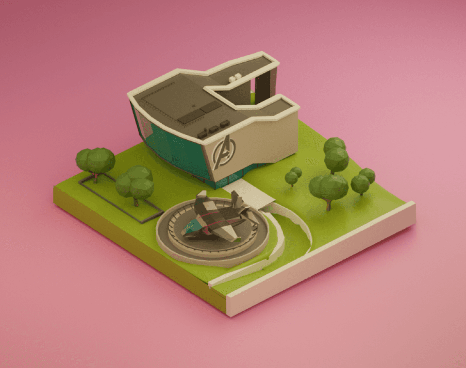 Exploring 3D modeling to get a taste of it. Here's a small model of Avenger's HQ.
