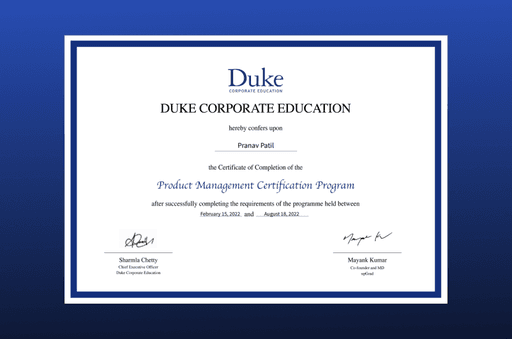 Completed a product management Program to understand Growth and Lifecycle of the product